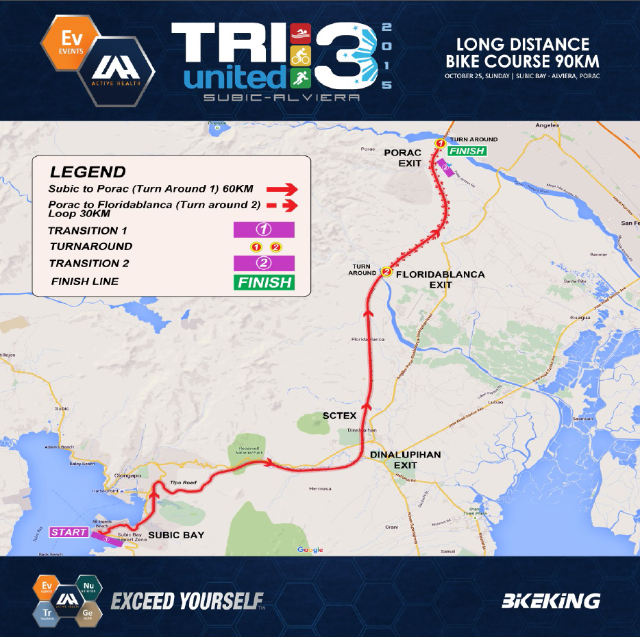1. Climb out of Subic (Tipo) 2. Flat Portion From Dinalupihan to Floridablanca 3. Rolling hills for the Floridablanca-Porac area (2 loops) Going out of Subic after the swim (Maritan Hway) get some proper nutrition and hydration in. It will be difficult to do this once you get to the Tipo gate. Use a light gear and spin your legs to get some blood flowing to them.
