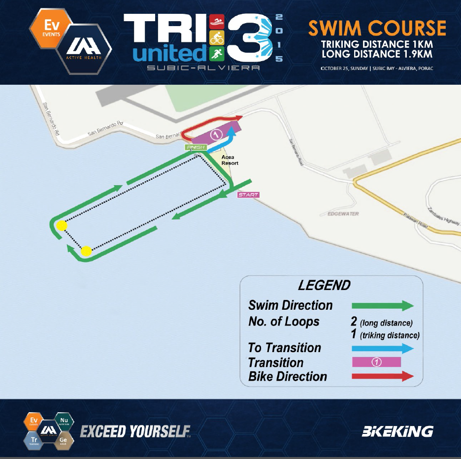 The swim is pretty straightforward. It consists of two loops and waters are generally calm. From experience, there are a lot of jellyfish during this time of the year. In the event that you get stung, don’t panic and proceed to the medic’s tent after. Unless the sting is very severe, it should not cause you any more trouble for the rest of the race. Remember to seed yourself well during the swim start. For everyone’s safety and convenience, those who aren’t very confident with their swimming abilities should stay at the back. This will lessen the effects of the dreaded “washing machine.” It will also allow the other swimmers to avoid collisions. Also remember that if you get hit, don’t hit back. We just want to get from one point to the other; nothing is intentional. Use a strong and steady stroke; focus on streamline and form. You won’t be fighting any current for this course so you won’t need to rely on sheer power.