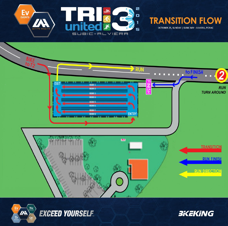 Take note of the transition flow below. Make sure you remember your number and rack your bike securely.