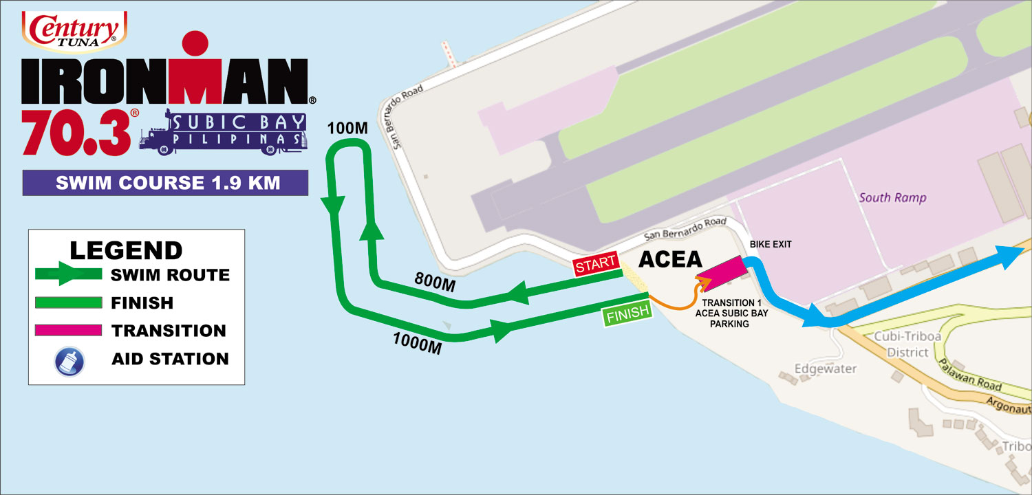 The swim venue is the all too familiar Acea Beach Resort (formerly known as Dungaree Beach). Unlike other races held here, you’ll follow a unique course. The path is L-shaped and traverses shore leading up to the airport runway. The water is usually very calm with the occasional current. Definitely nothing to be worried about; however, if the current is stronger than normal, just be prepared to do a lot of sighting and course correction.