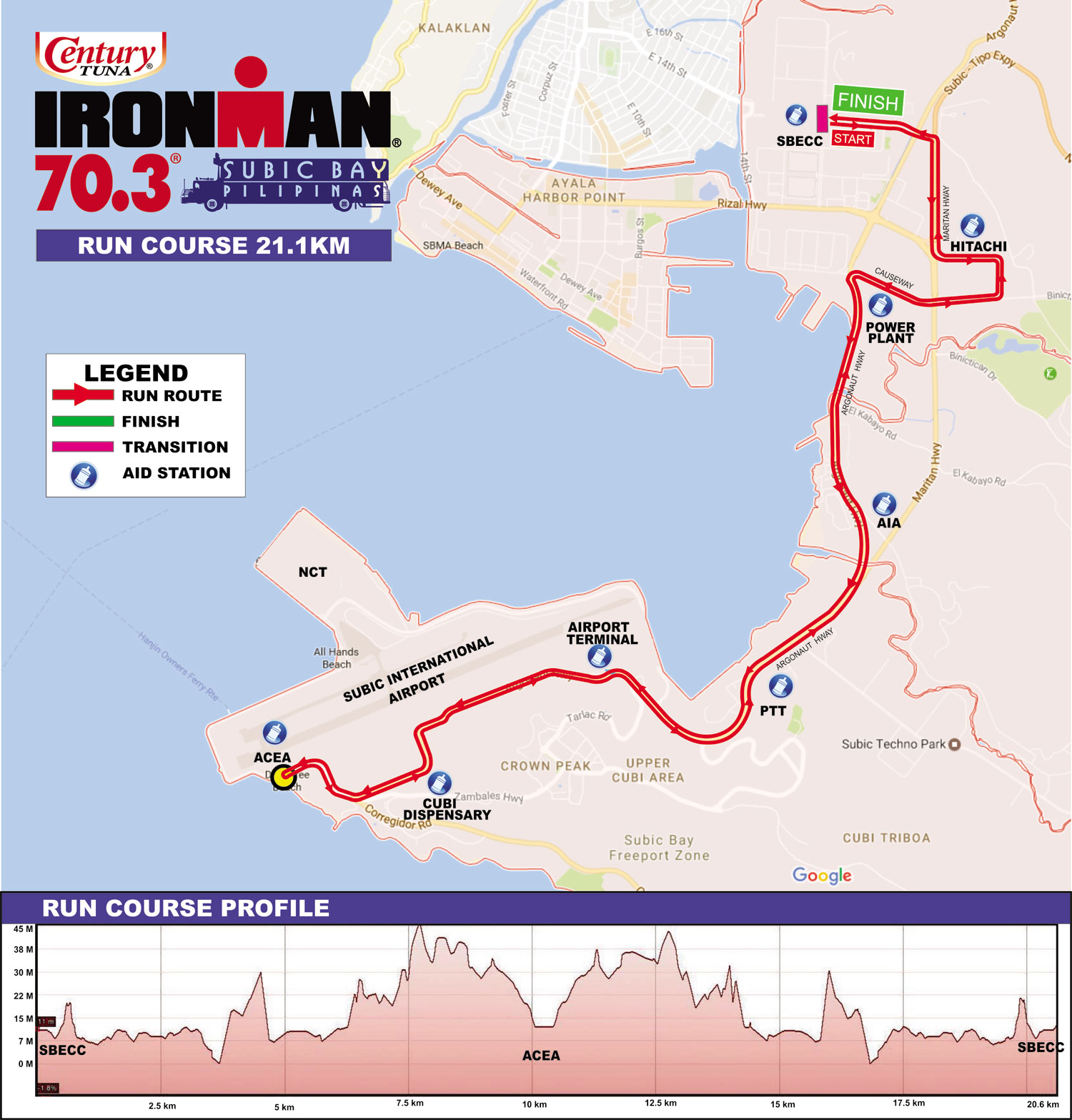 After these harsh segments, the road conditions improve but heat becomes a huge factor. There’s barely any shade for the rest of the run course; however, it’s there’s often a cool and strong breeze to offset the heat. Take note that the run course ascends gradually; expect a slight gradient all the way until the turnaround near T1. These 2-3% grade hills are scattered along the run course (i.e. the hills near the Airport). Stay well hydrated and don’t neglect taking your nutrition.