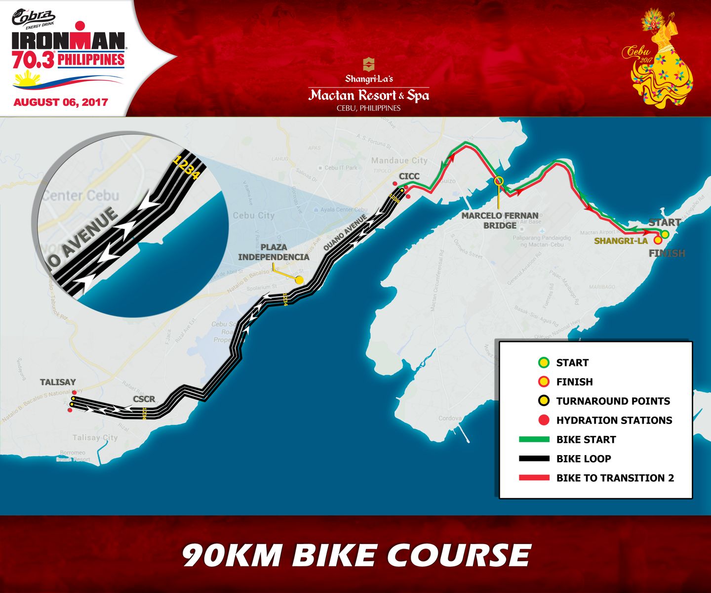 The Cobra Ironman 70.3 in Cebu is no different from the course last year. This isn’t because of a lack of interest from the organizers to keep it interesting but simply because “if it ain’t broke, don’t fix it!” The course went through several iterations over the past 6 years and this has been the layout that works best. If you’re concerned about getting bored because of the lack of variation, don’t fret. This race is very unpredictable and somewhat “moody.” We’ll have to deal with strong currents during the swim, vicious headwinds on the bike, and punishing heat on the run. It’s a game of dice as they say. The best solution is to be prepared for every scenario. Through this article, we’ll try and help you the best we can.