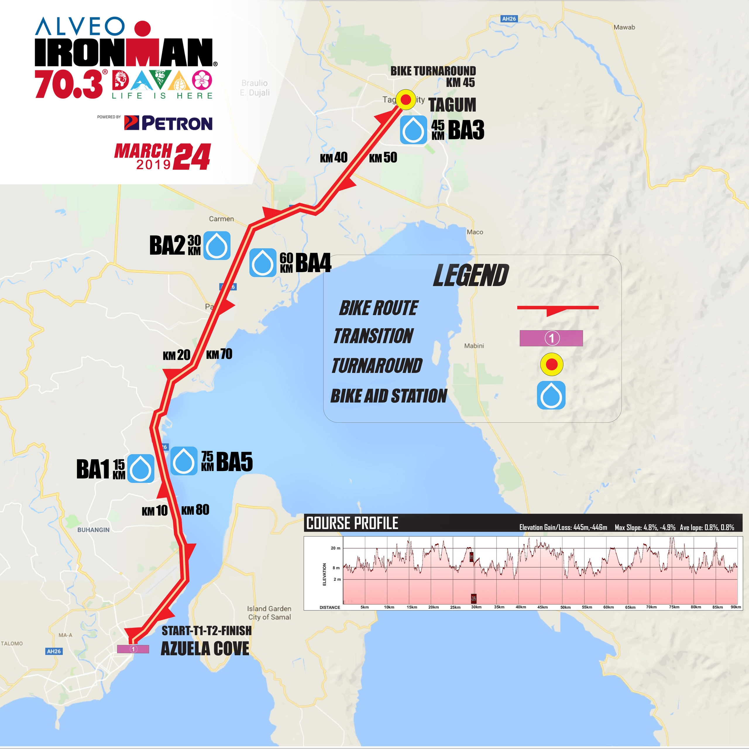 The bike is where the fun happens. Davao is touted as a very fast and PR-worthy course. They even improved on the road conditions compared to last year which means that PRs will continue to fall for this segment. Although it’s too early to predict wind conditions (one week out), you can safely assume that some segments will have a little bit of headwinds or crosswinds. If you’re planning to race with deep aero wheels and/or a disc, make sure you’re confident with your handling. It’s definitely not as bad as the kona-esque wind conditions in the SRP roads of Cebu but still be prepared.